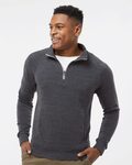 J America Adult 7.0 Ounce Triblend Fleece Quarter Zip. 7.0 ounce, Tri-blend fleece, 55% Cotton, 39% Polyester, 6% Rayon. 1/4 Zip placket with Off-white zipper tape. 1x1 rib collar, cuffs and waist. Welt pockets along side gusset. Raglan sleeves.